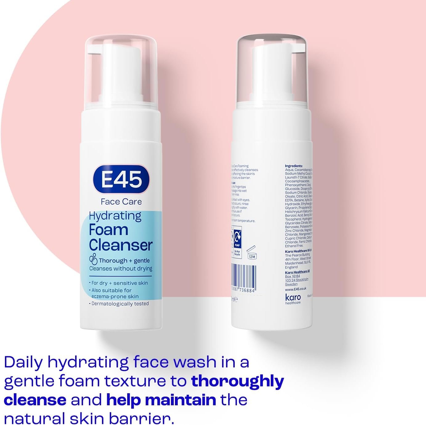 - DERMATOLOGICALLY TESTED – E45’s facial cleanser has been tested by dermatologists and specifically designed for facial skin. Its gentle formulation means it effectively cleanses the face and takes care of your skin without affecting the skin’s natural moisture barrier or drying out the skin. The foaming cleanser is easy to use as part of your daily routine and reaches deep into pores to draw out dirt and impurities, so you only need to gently rinse it off, leaving you with clean, soft skin.
