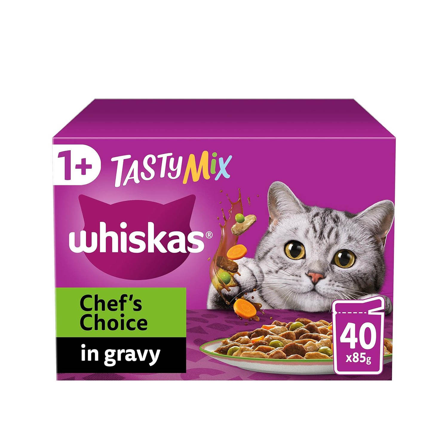 Whiskas Tasty Mix 1+Chef´s Choice in Gravy 40 x 85 g Pouches, Adult Cat Food