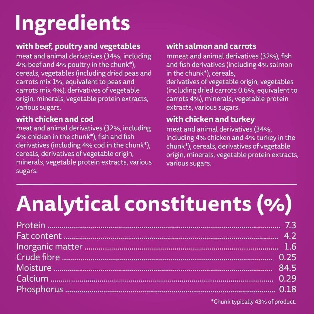 - Wet cat food with delicious flavour sensations combining proteins and vegetables in a delightful mix guaranteed to make your cat purr